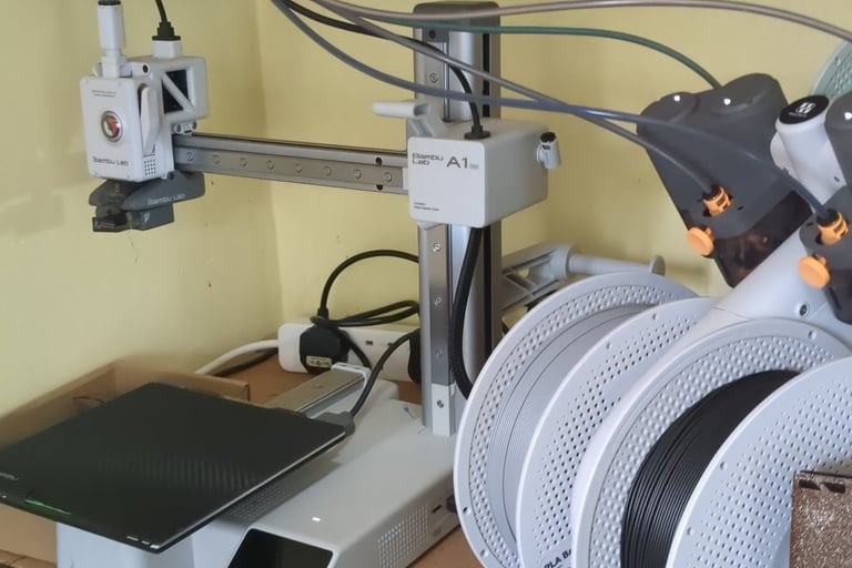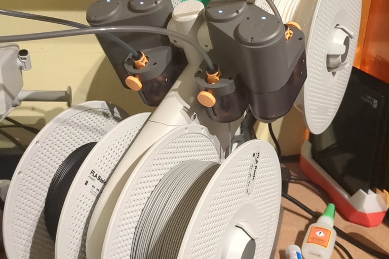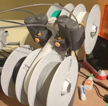We use an AMS (automatic material swapper) which allows us to make multi coloured prints.